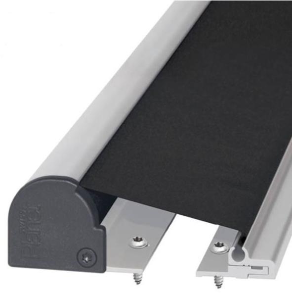 Planet Fingerschutz-Rollo FSR 6000 [Quick] zur Sicherung der Bandgegenseite an der Nebenschließkante von Drehflügeltüren. Automatisch auf konstante Spannung ziehendes Schutzrollo.