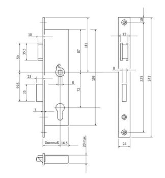 BKS Rohrrahmenschloss Typ 1205 – Einsteckschloss für 1 flügelige Türen