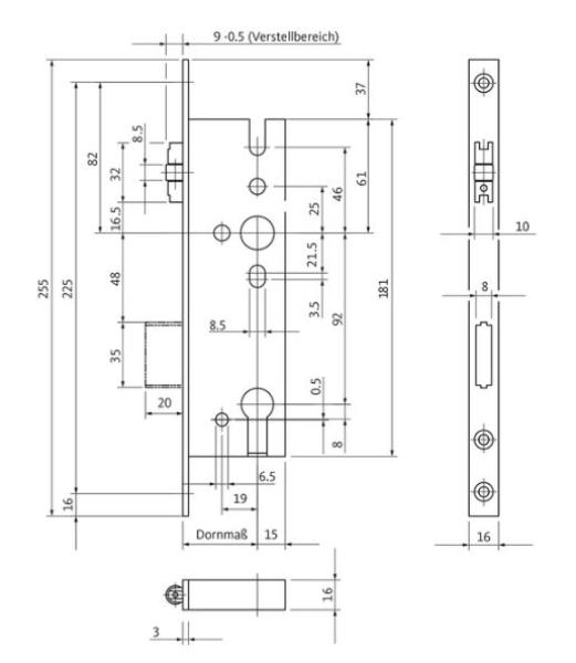 Rollfallenschloss ohne Befestigungsmaterial und Schließplatte