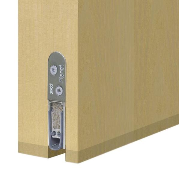 Automatische Türabsenkdichtung Planet HS – RD / 48 dB für Schall- und Rauchschutztüren, bandseitige Auslösung mit automatischem Ausgleich bei schiefem Boden, Parallelabsenkung, Dichtungshöhe bis 22 mm, zum Einnuten bündig oder tiefer mit Lippenschutz. Lippe aus Silikon, seitliche Befestigung. Profil aus Aluminium, 13 x 30 mm.