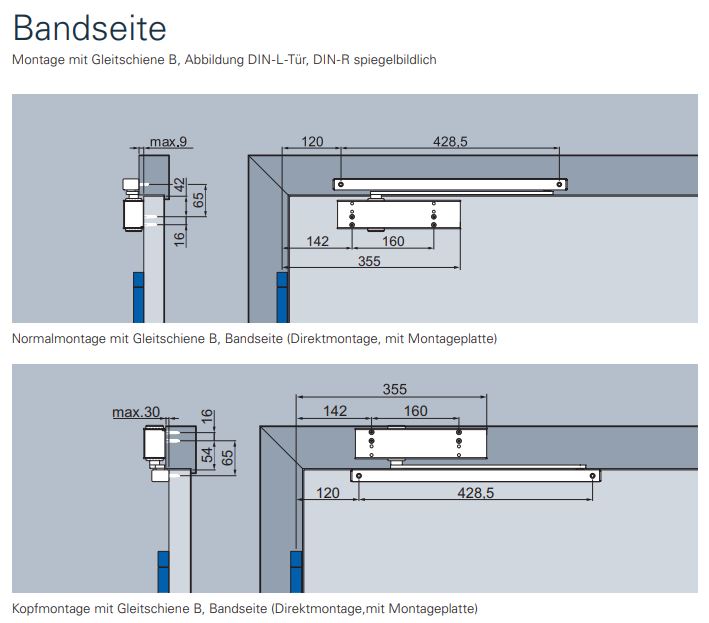 Schließkraftgröße 1 / 4 nach EN 1154 (für Türbreiten bis 1100 mm)