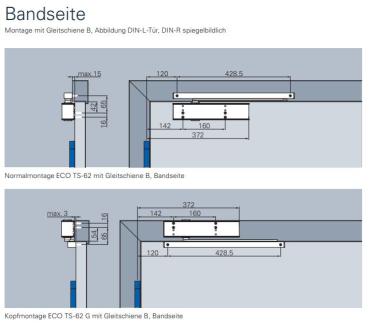 ECO Newton Gleitschienenschließer TS 62 B/G – Grundkörper mit Hebelarm ohne Gleitschiene